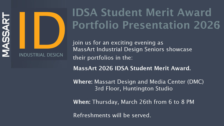 Each Spring, the MassArt Department of Industrial Design hosts the Spring ID Show and Awards at the MassArt DMC. This annual event features a showcase of student work from, highlighting the creativity and innovation of the Industrial Design students. This impressive showcase of projects and achievements of our talented designers is open to the public and industry guests.